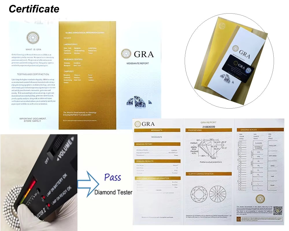 Incastonature in moissanite VVS di altissima qualità, con certificato GRA incluso. Brillantezza effetto diamante, testabile al diamond tester.